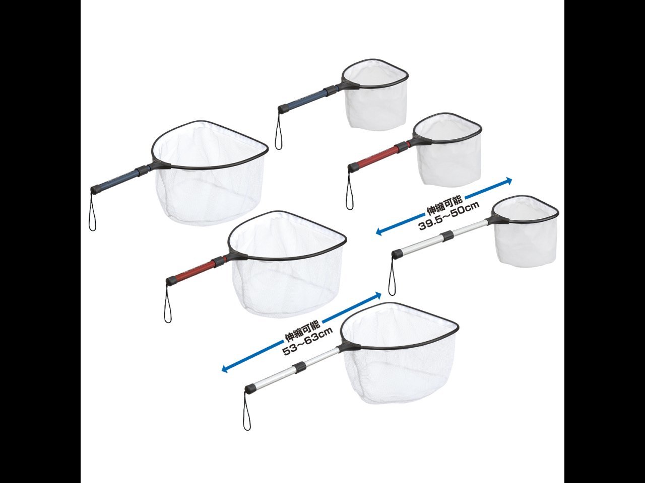 Lサイズは、2mm目のマイクロネットを採用。柄は伸縮可能タイプ。持ち運びに便利な小物用ネット。