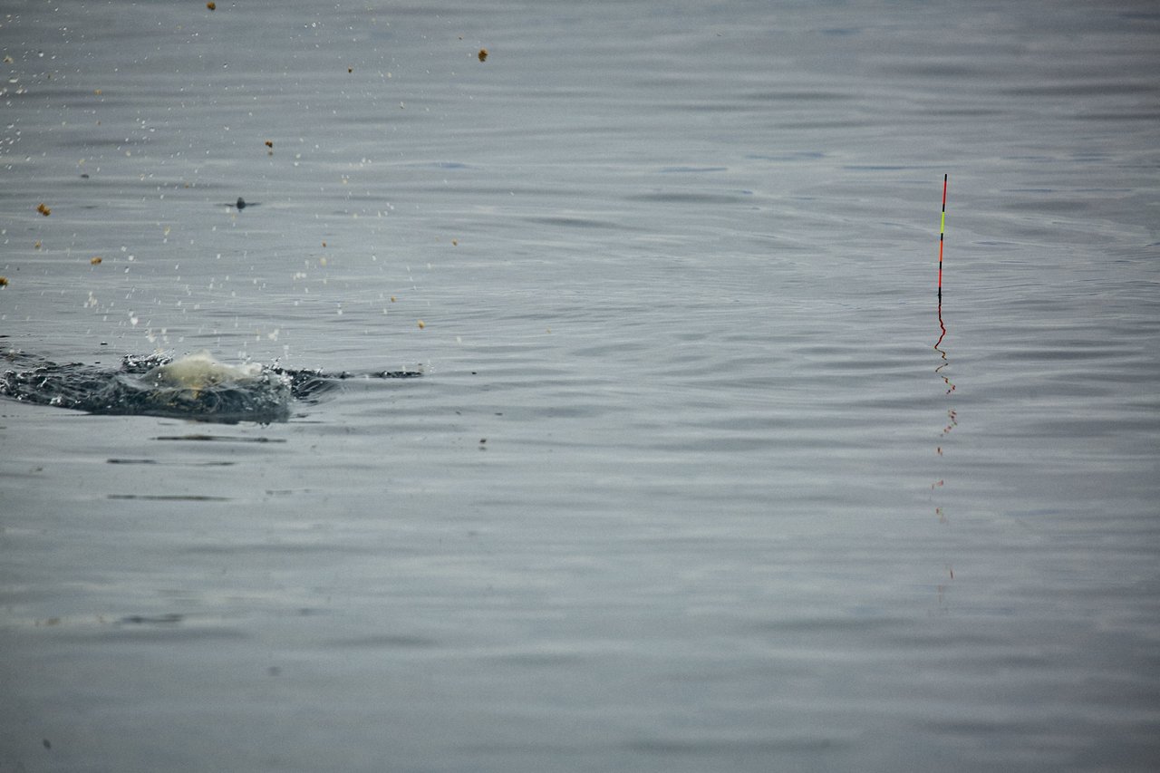 棒ウキの扱いに慣れてきた頃には、ひとりで撒き餌を飛ばし、黙々と釣りに集中していた。