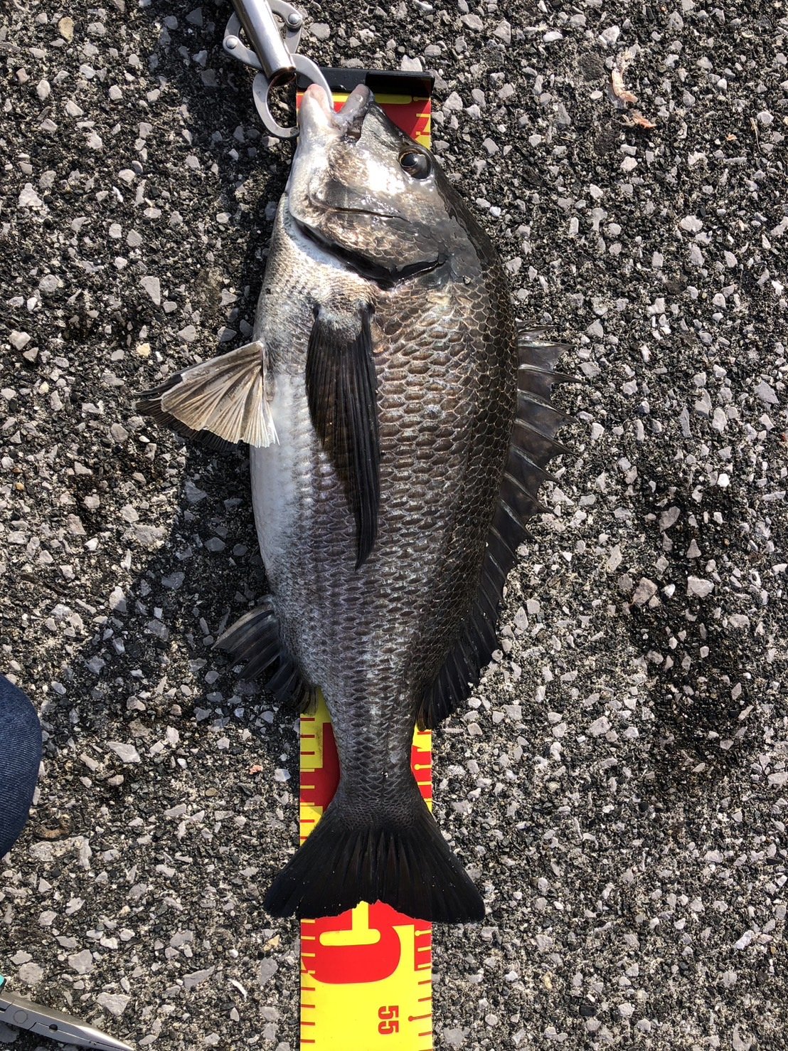 なんと2日間の日程の初日の3投目で57㎝の巨大なチヌが飛び出したのだ。