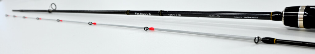 レングスについても7フィートもあれば、ティップランロッドとしてはショートな5’5″のSN55L/SLまであり幅広い。ちなみにSN55L/SLに関しては、ソフトに誘いわずかなアタリにラグなくフッキングを決められる性能があり、どハマりする状況も少なくない。逆に、長めできわめて繊細な唯一のULのソリッドティップモデル「SH71UL/SL」もある。