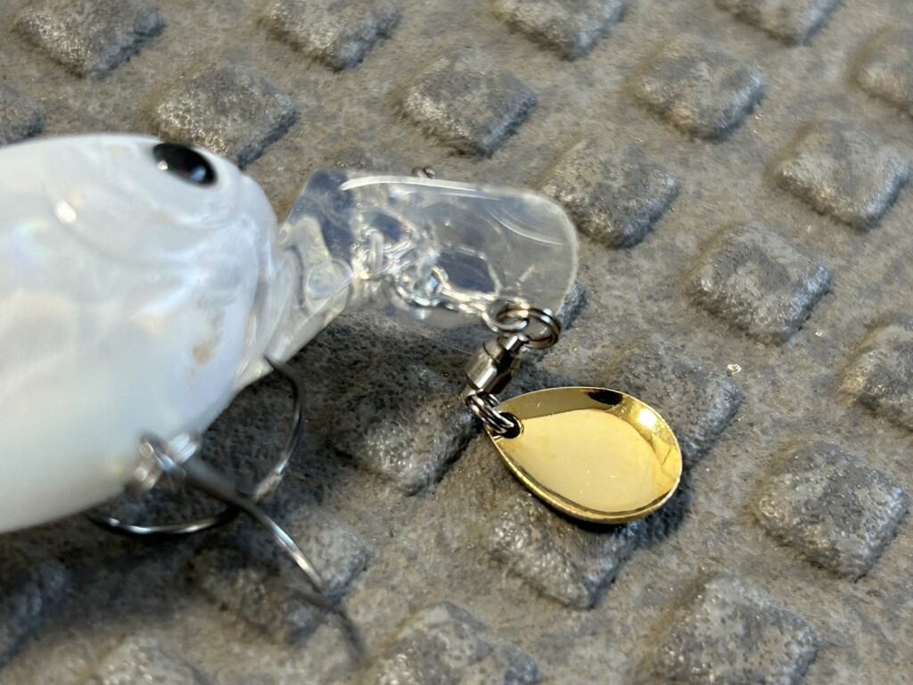 で、コロラドブレードチューンの話。ディープを攻められるアドバンテージは大きいのですが、自分のメインフィールドとなっている霞水系ではディープよりシャローを攻めることが多く、さらに濁りも強いんです。そこで“アピール力を増したい”と思い、コロラドブレードを付けてみたんです。