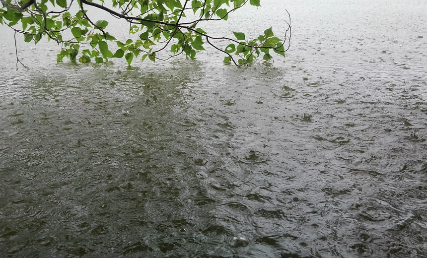 水面が雨粒で叩かれて、水中の様子まで見ることができません。